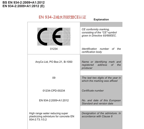 混凝土用減水劑在歐盟市場上銷售需要符合歐盟強制CE認證要求,減水劑根據EN 934-2:2009+A1:2012歐盟標準進行CE認證。根據建筑產品歐盟CPR法規進行測試及認證,并加CE標簽,才能在歐盟市場上順利銷售