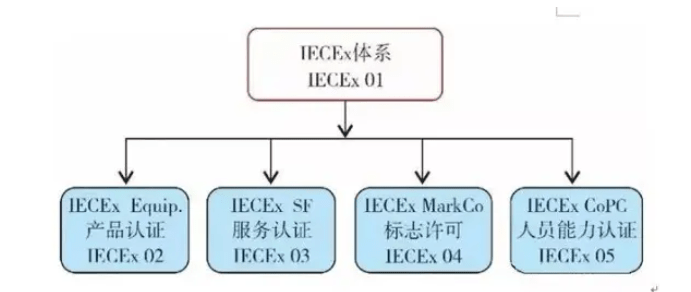IECEx認(rèn)證體系包括IECEx02產(chǎn)品認(rèn)證,IECEx03服務(wù)認(rèn)證,IECEx04標(biāo)志許可,IECEx05人員能力認(rèn)證