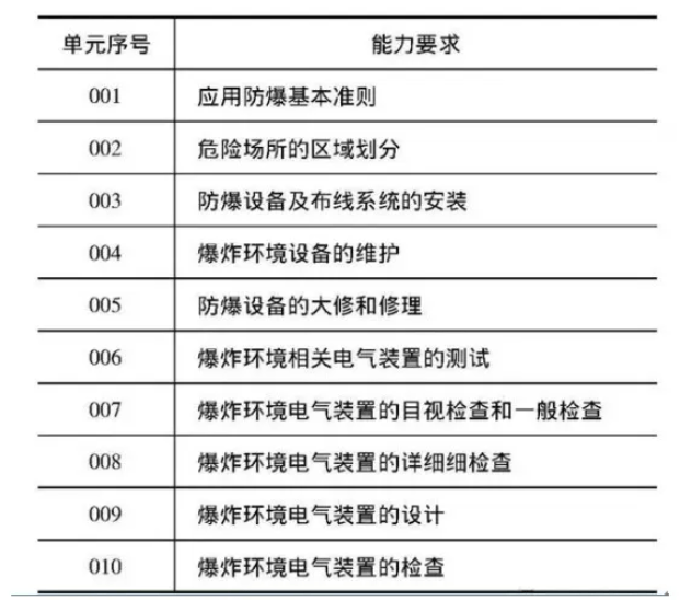 IECEx05人員能力認(rèn)證為從事爆炸性環(huán)境用防爆設(shè)備和相關(guān)工作人員的知識和技能是否達(dá)到IECEx要求、是否掌握危險(xiǎn)場所安全的作業(yè)程序、是否能夠正確安裝、檢查、維護(hù)和修理防爆設(shè)備和系統(tǒng)提供了證明。IECEx人員能力評定依據(jù)IECEx OD501、IECEx OD502、IECEx OD503、IECEx OD504操作文件進(jìn)行,具體能力單元見表1,每個(gè)單元對人員的經(jīng)驗(yàn)、知識、技能都做了明確要求,申請者需要具有一定的技術(shù)經(jīng)驗(yàn)和培訓(xùn)經(jīng)歷后才可申請進(jìn)行評定,001單元為基礎(chǔ)單元,必須在001的基礎(chǔ)上單元才能申請其他單元的評定。